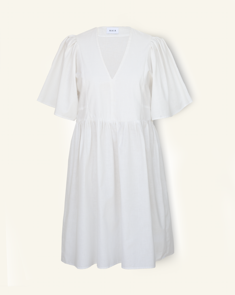 Our everyday Tamara Dress is a loose fitting mini, with a gathered skirt and bell sleeves. We can't stop wearing it, we think you'll feel the same.
